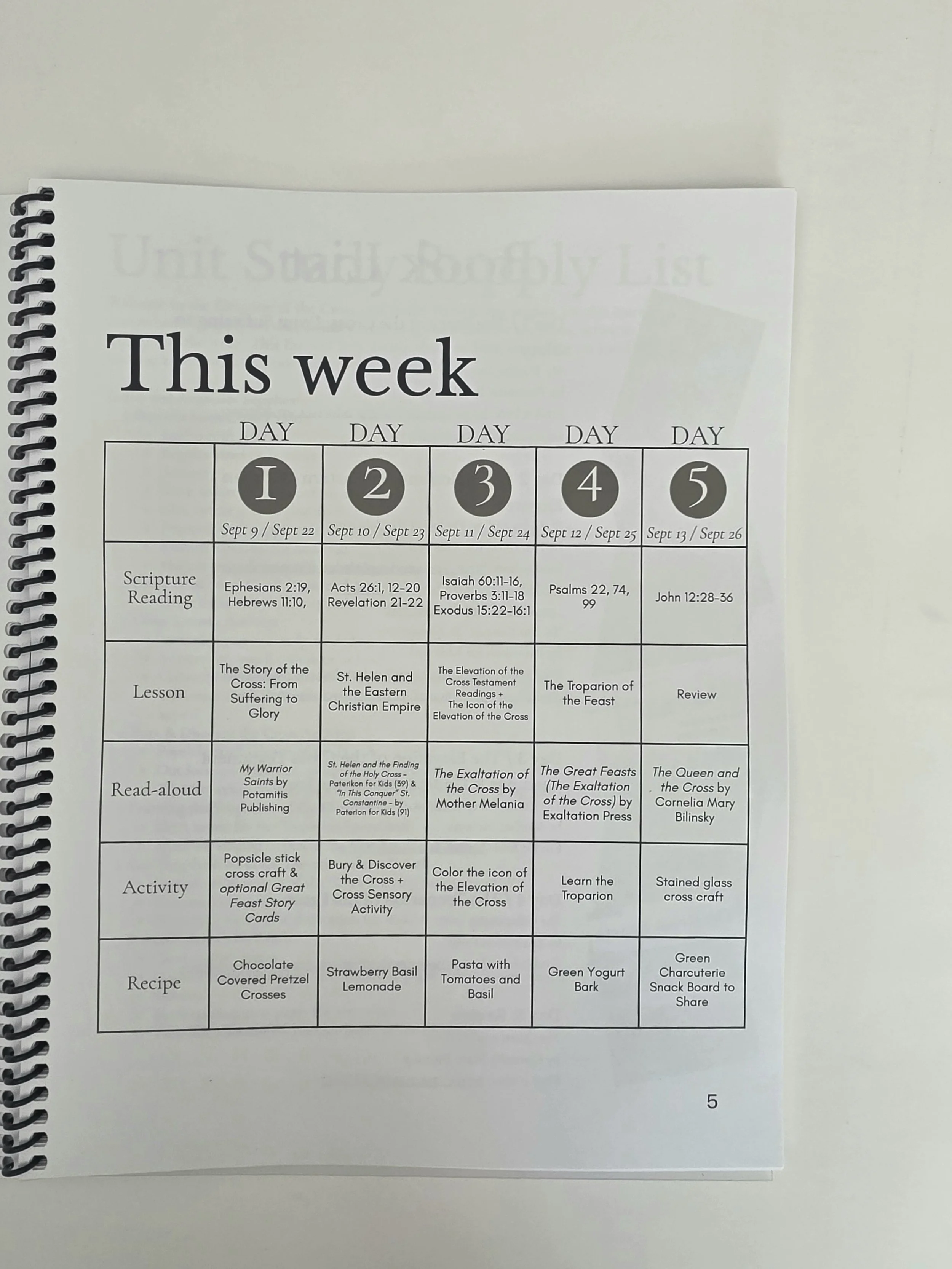 Prepare your family for the Feast of the Elevation of the Holy Cross on September 14 with this thoughtful 5-day studythat weaves together Church history, hymnography, theology, and hands-on learning.