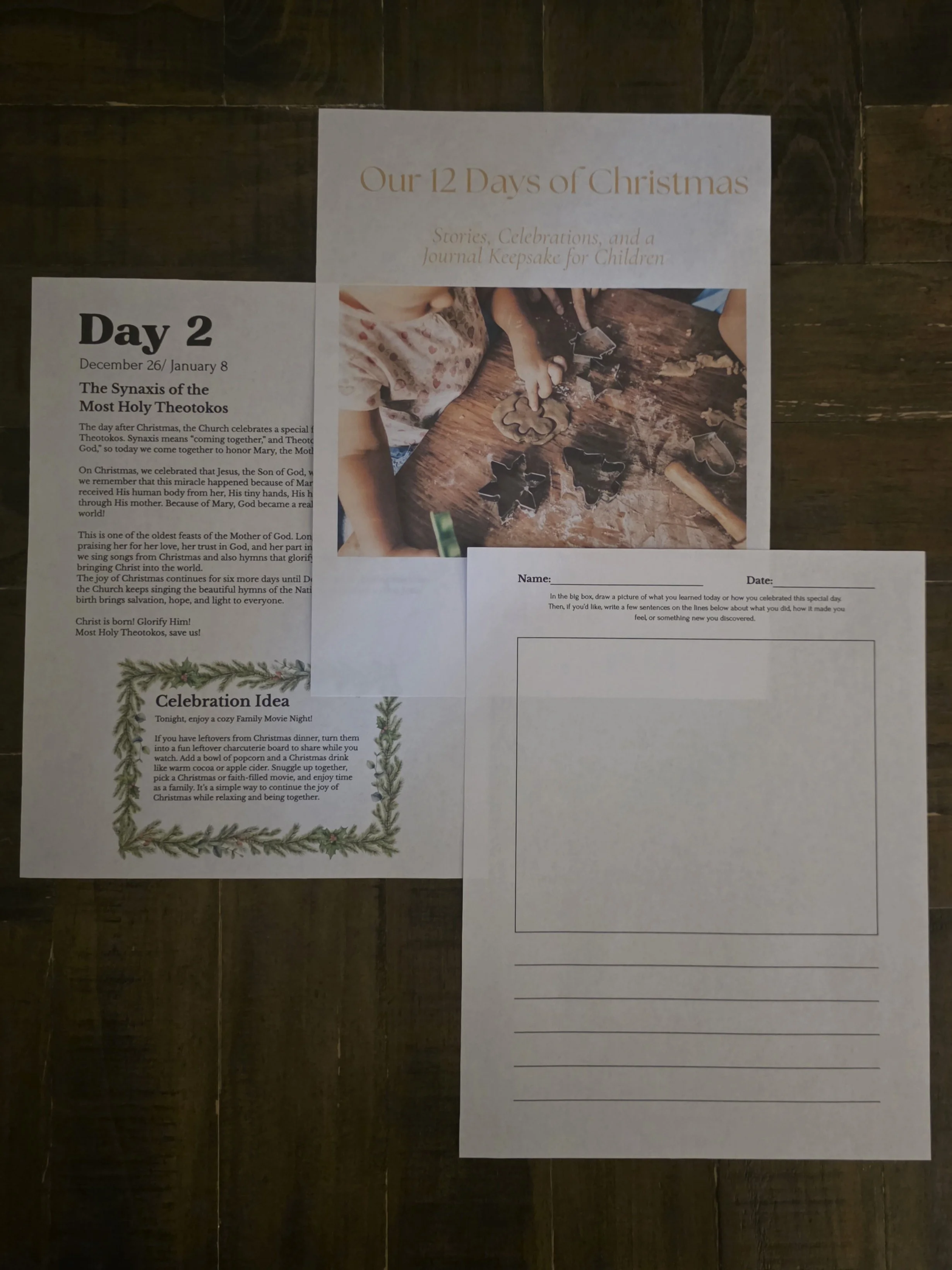 Twelve days of lessons, activities, and journaling to celebrate the Christmas season from December 25 through Theophany.