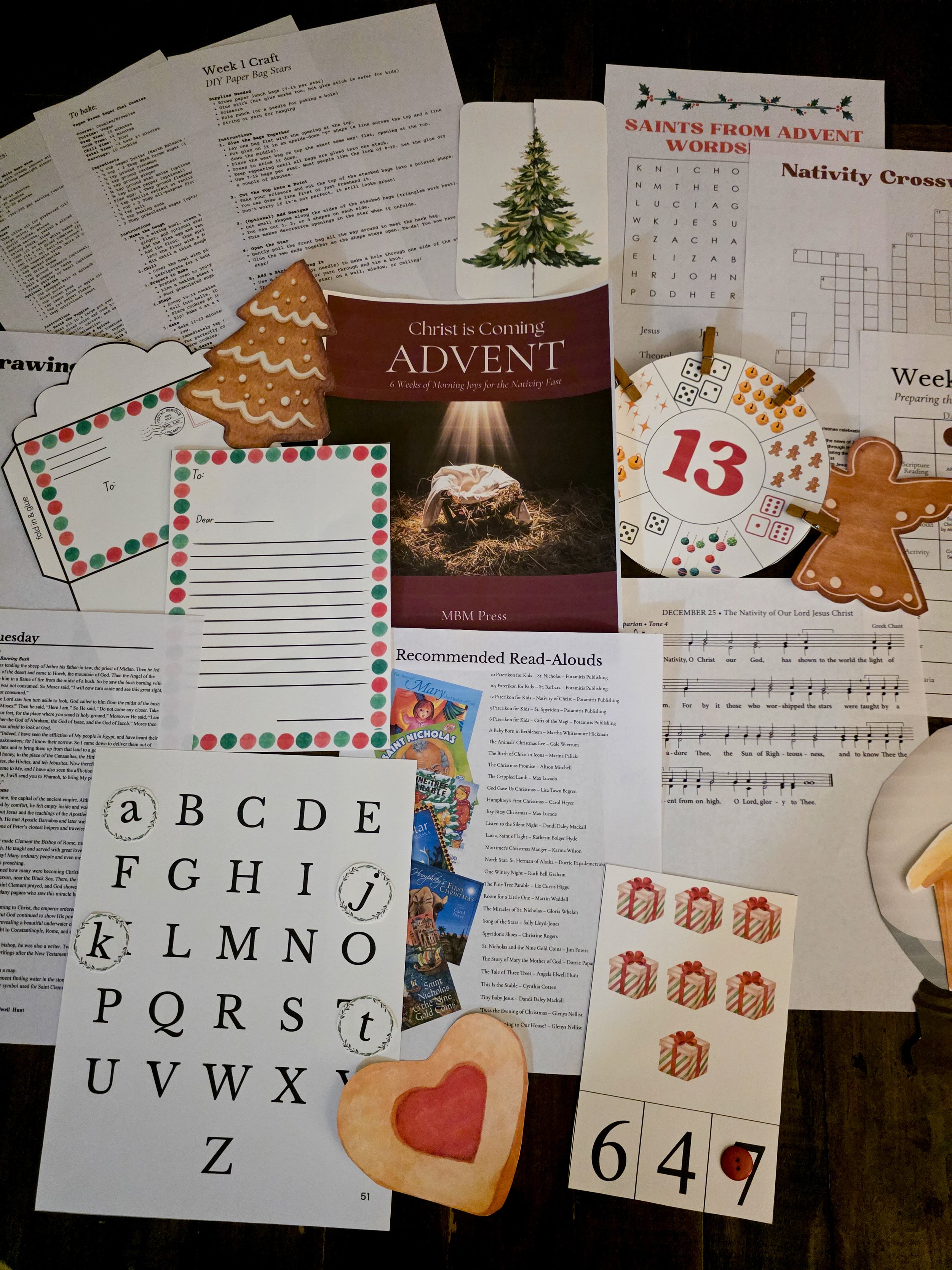 The Nativity Bundle includes every Advent and Christmas product from MBM Press at a reduced price. Families can now enjoy the full seasonal collection; unit study, coloring book, Jesse Tree banner, and 12 Days of Christmas journal, for a complete, Christ-centered journey from the beginning of the Nativity Fast through the Feast itself.