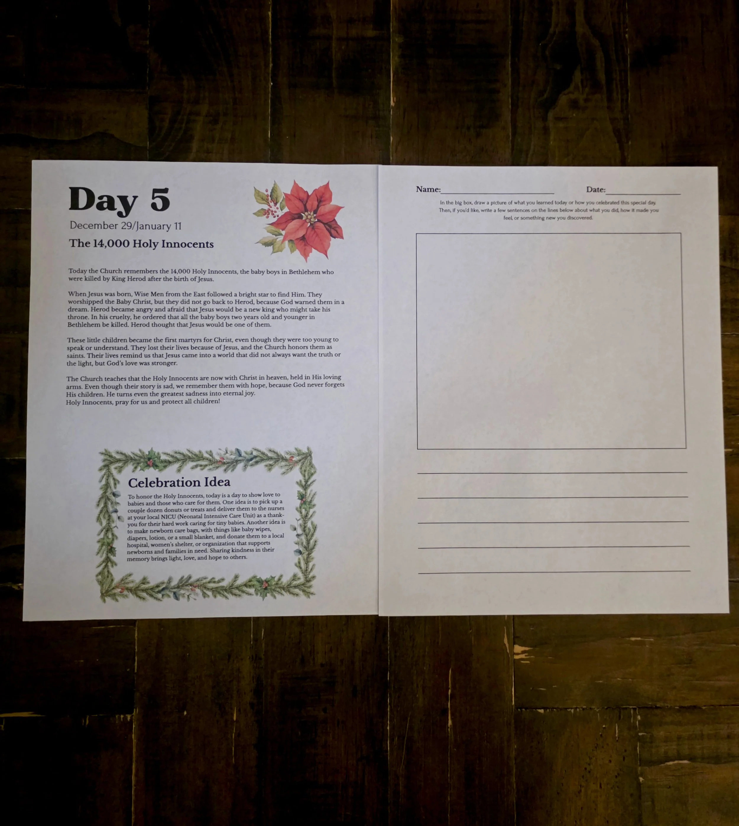 This bundle is designed to make the season peaceful, meaningful, and easy to implement. From daily Scripture and activities, to coloring and crafts, to the joy of celebrating all twelve days of Christmas, every resource works together to support a gentle, prayerful rhythm in the home.